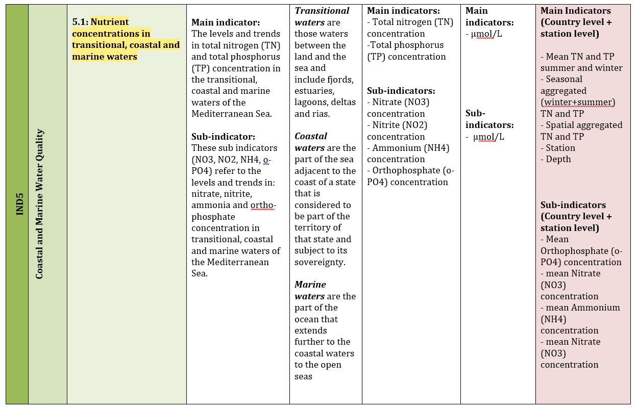 Indicator 5 : Concentration on nutrient concentrations in transitional, coastal and marine waters